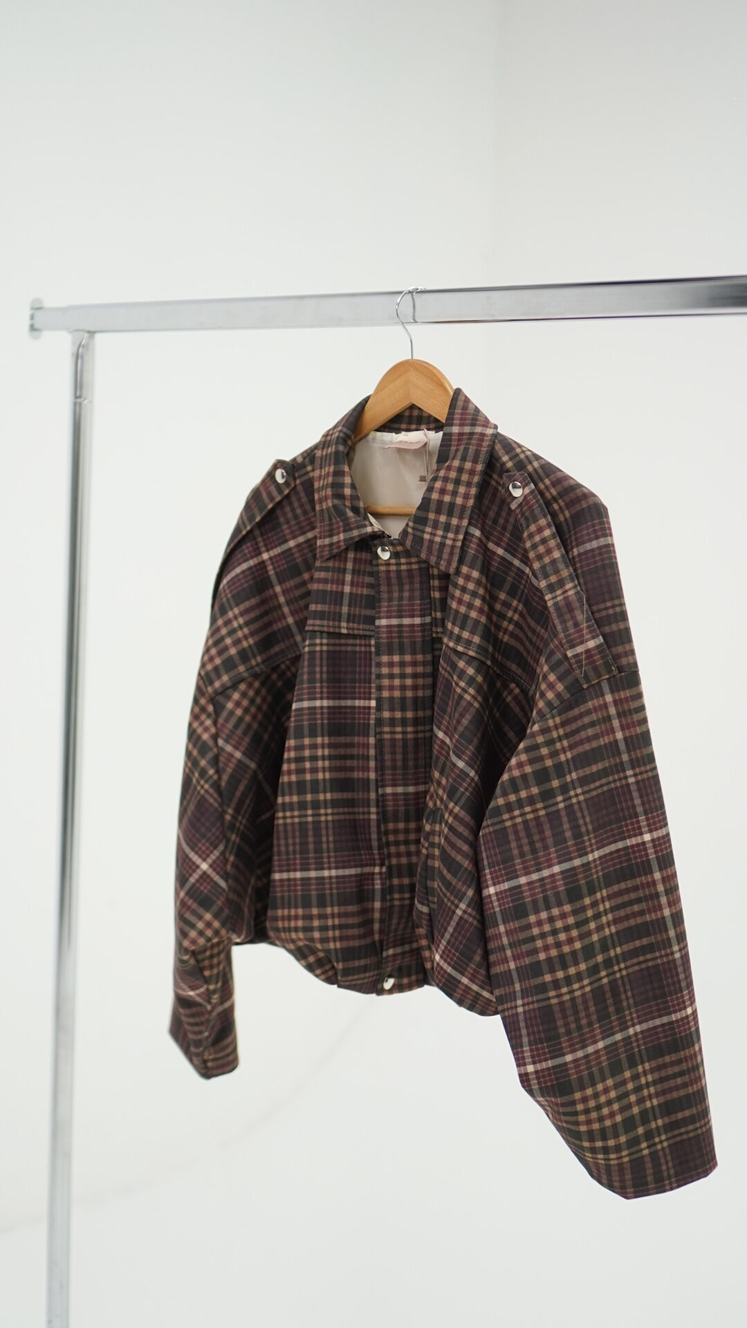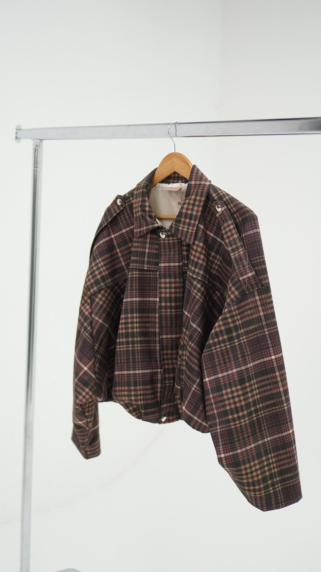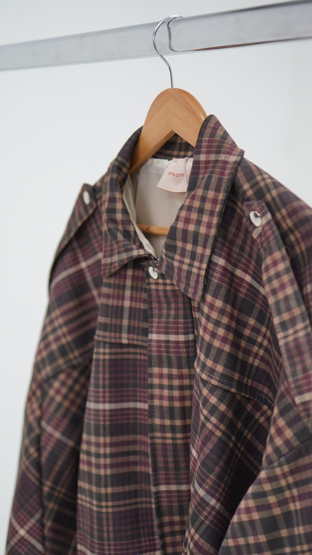 Bomber oversize a scacchi bordeaux, marrone, beige e bianco, taglia unica.