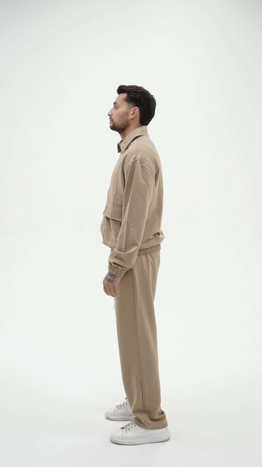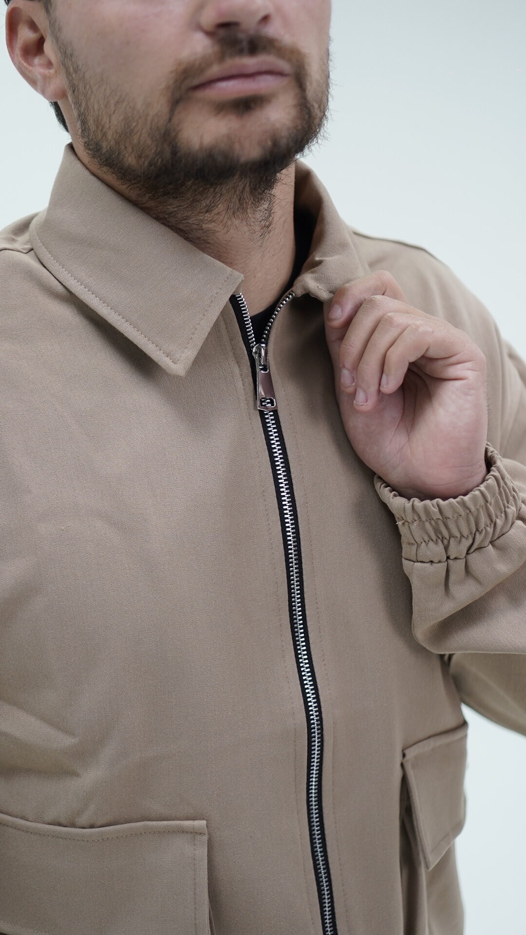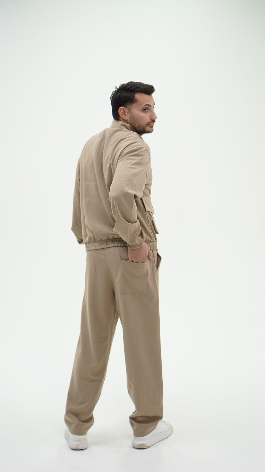 Coordinato due pezzi, giacca con Zyp con tascone frontali, pantalone largo.