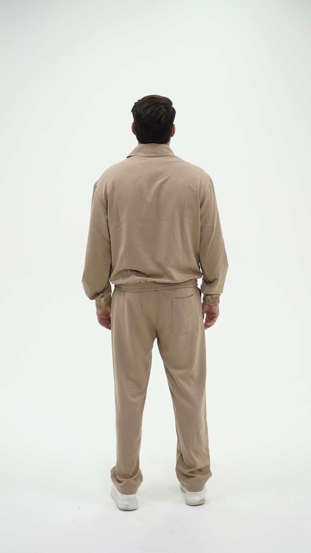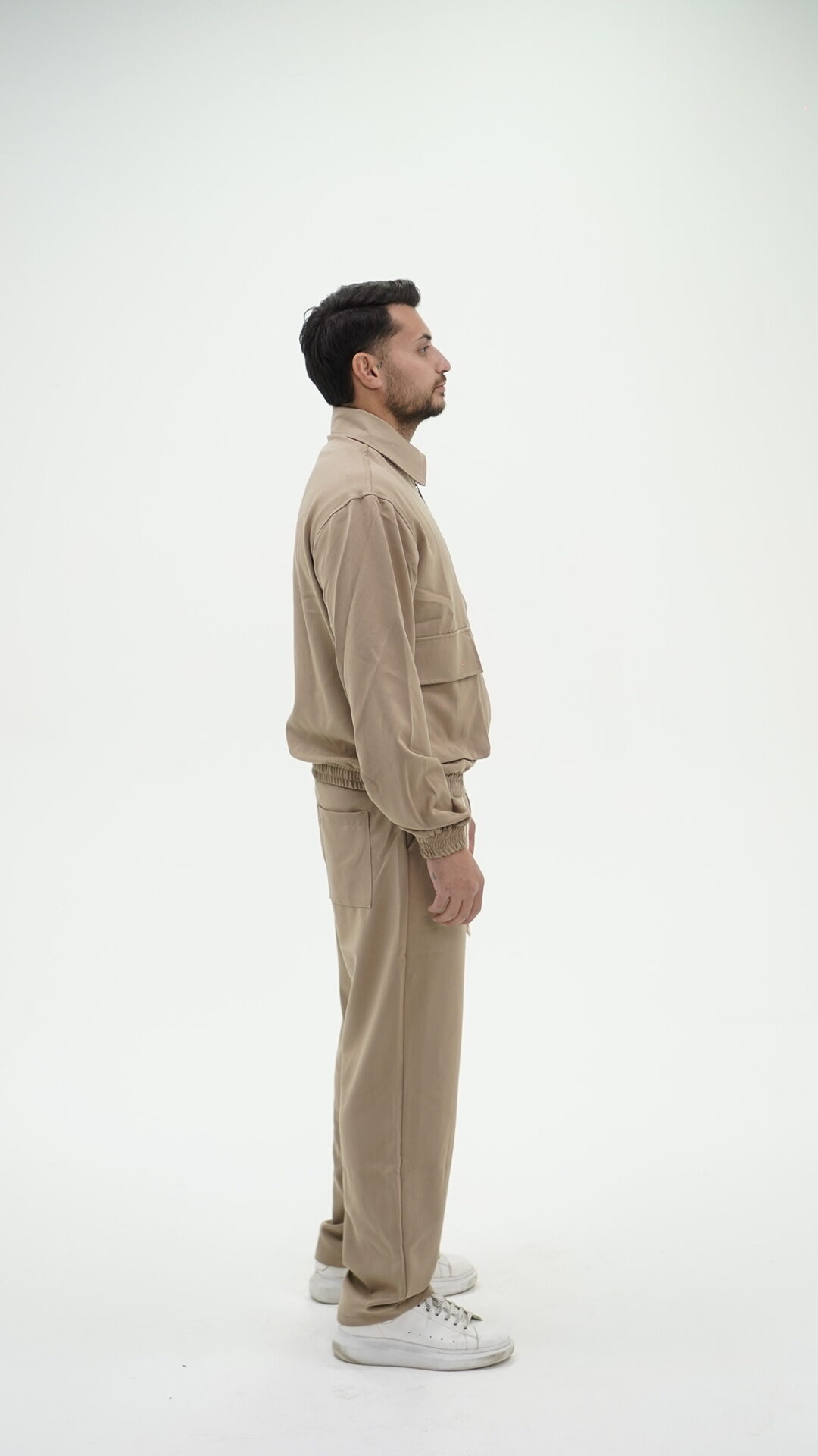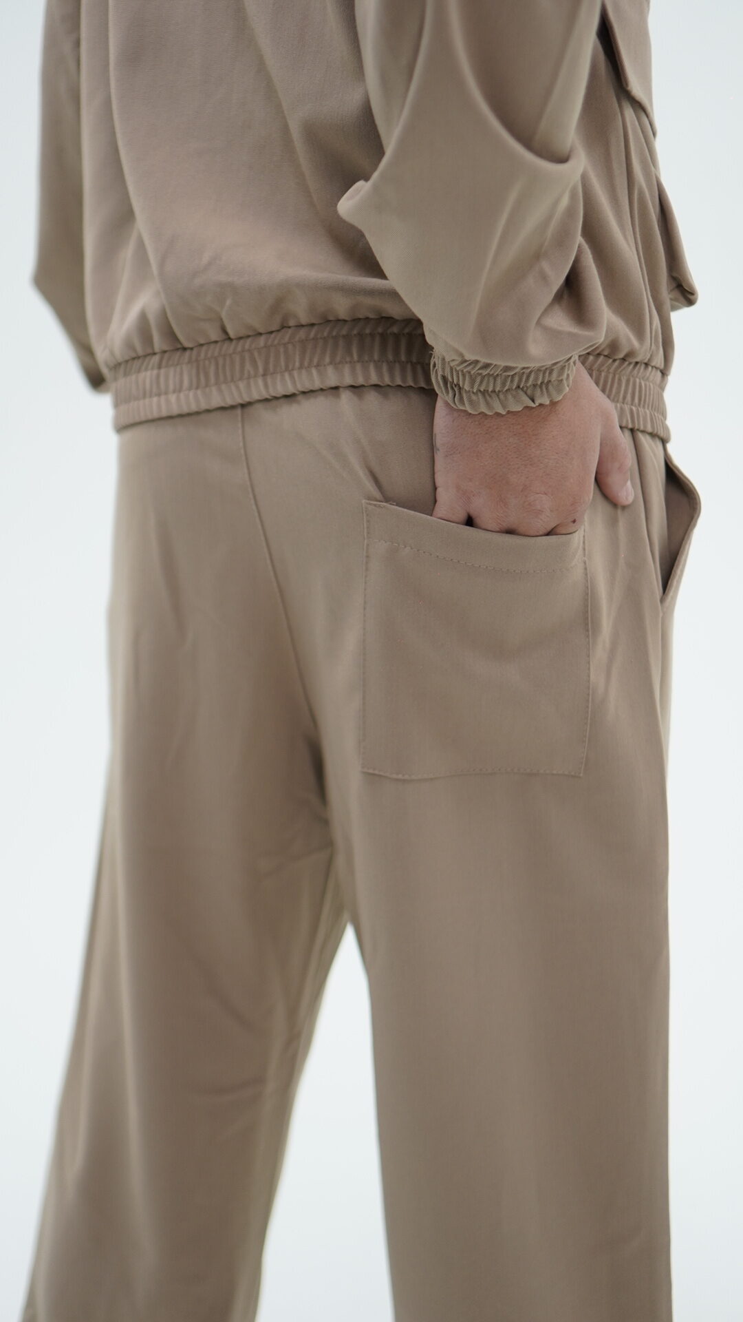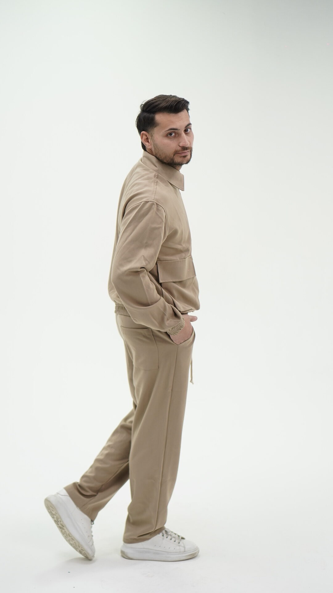 Coordinato due pezzi, giacca con Zyp con tascone frontali, pantalone largo.