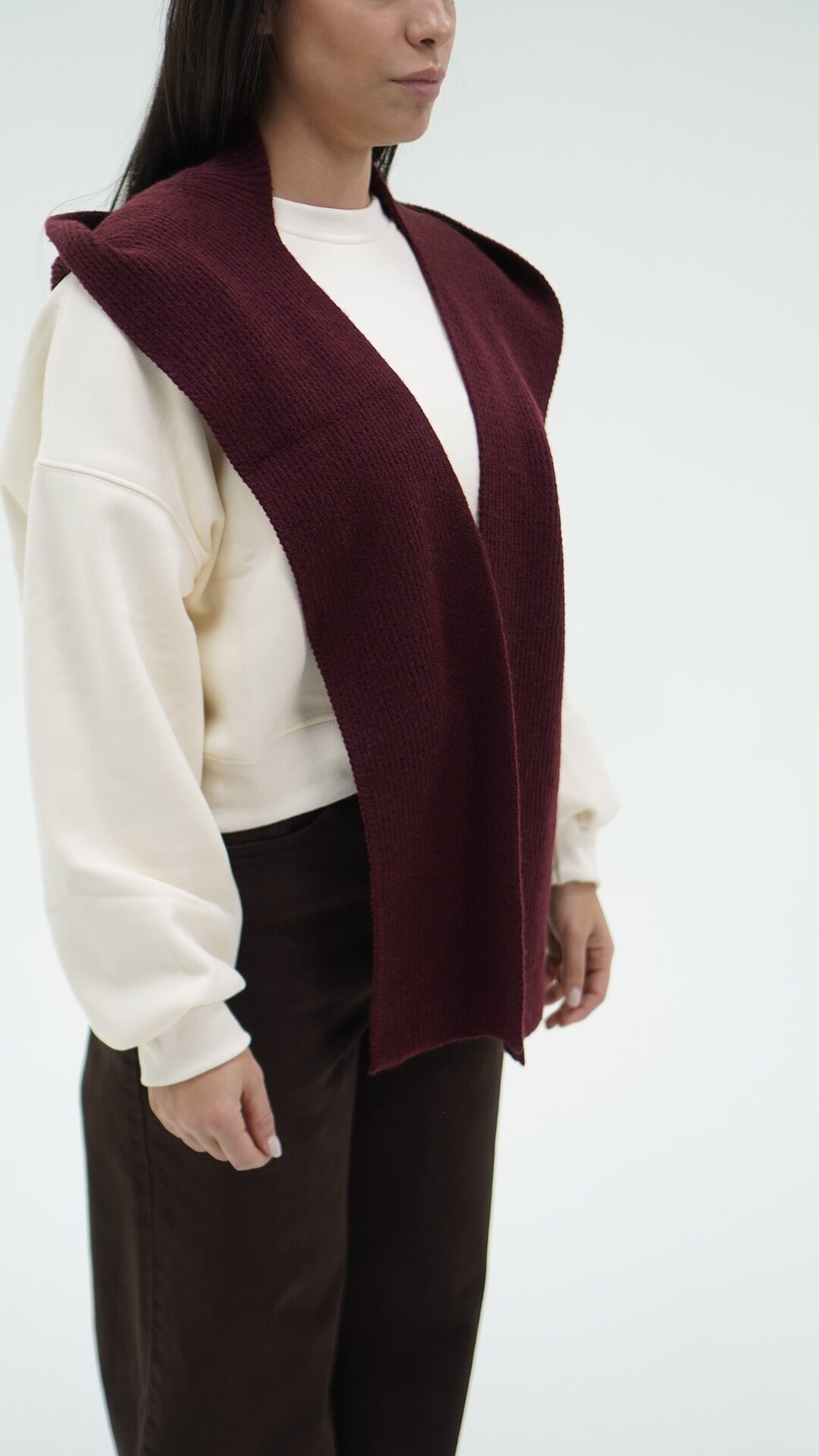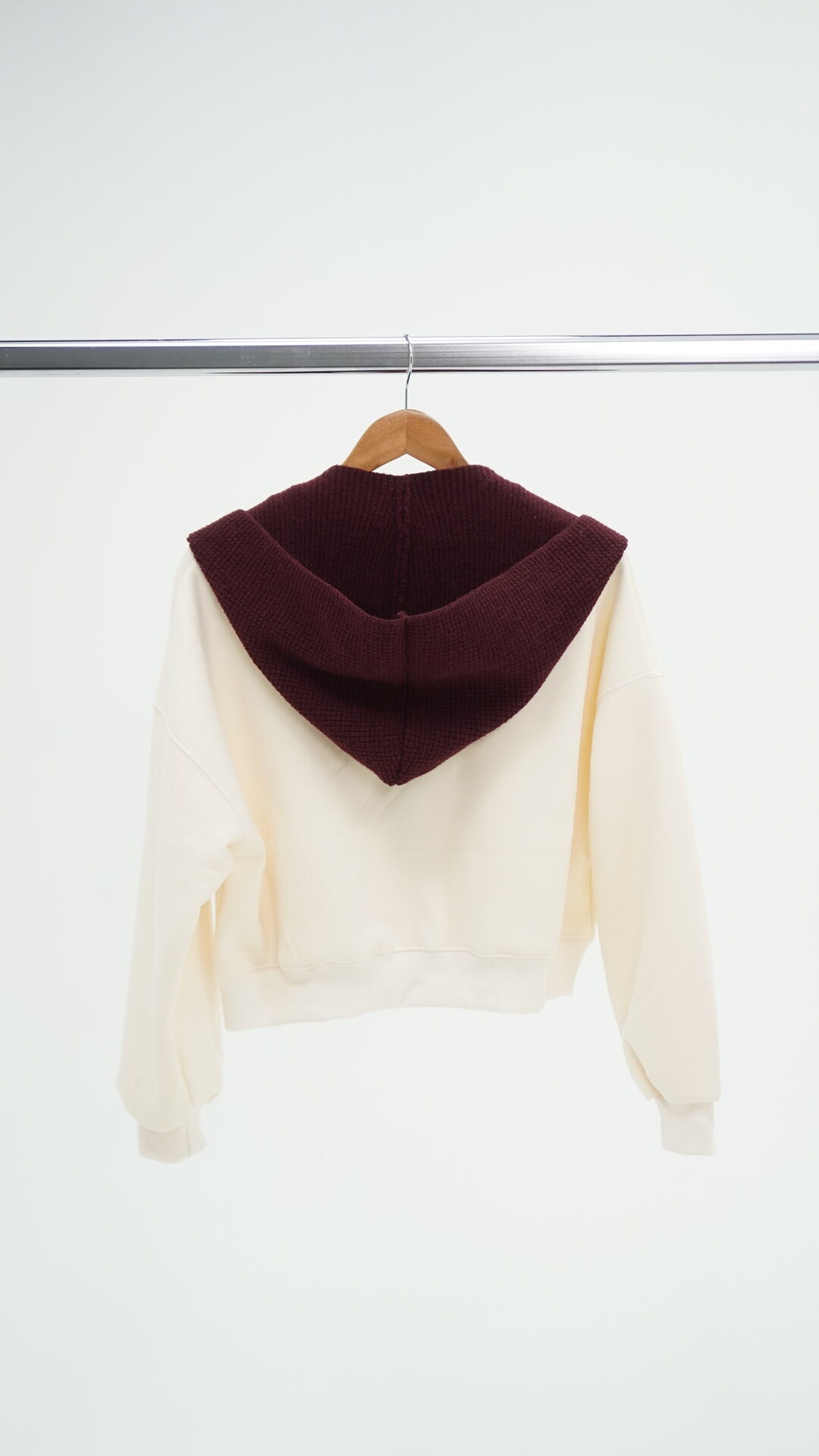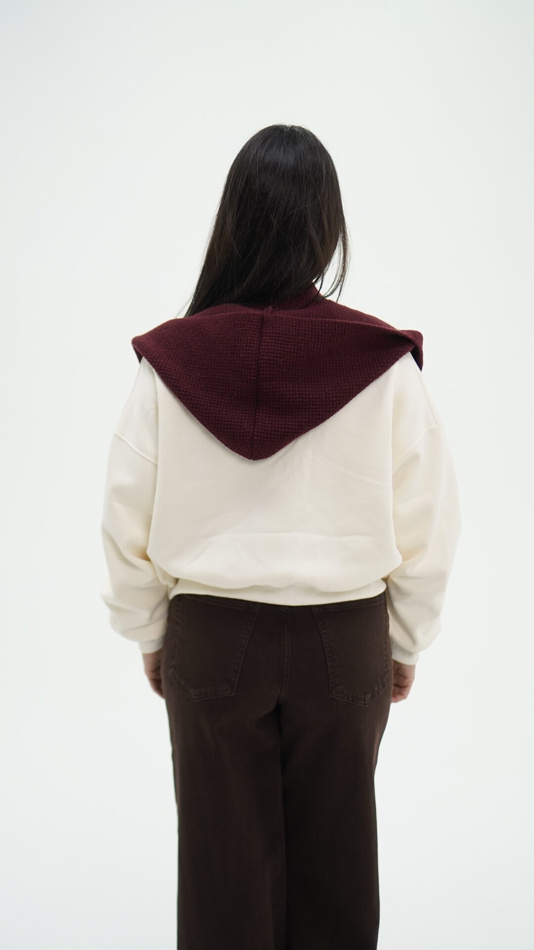 Felpa 2in1 con cappuccio color bordeaux che si può levare