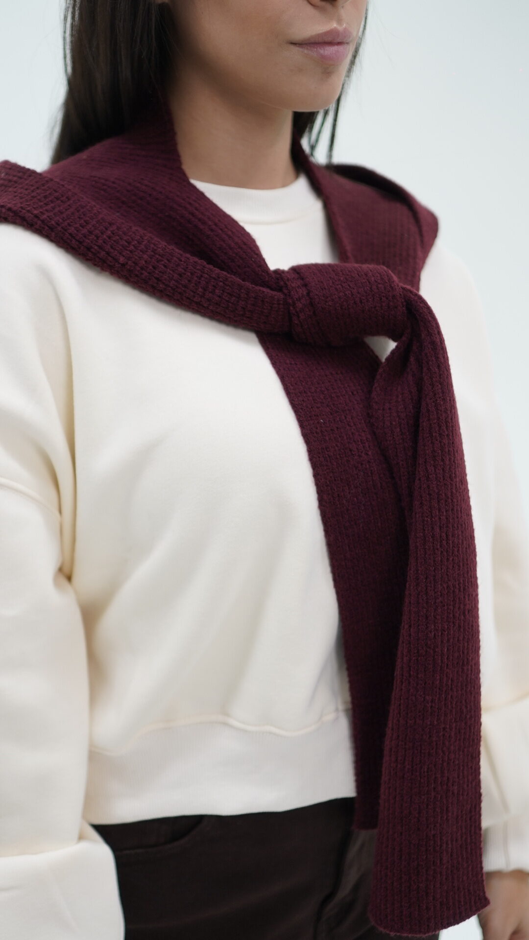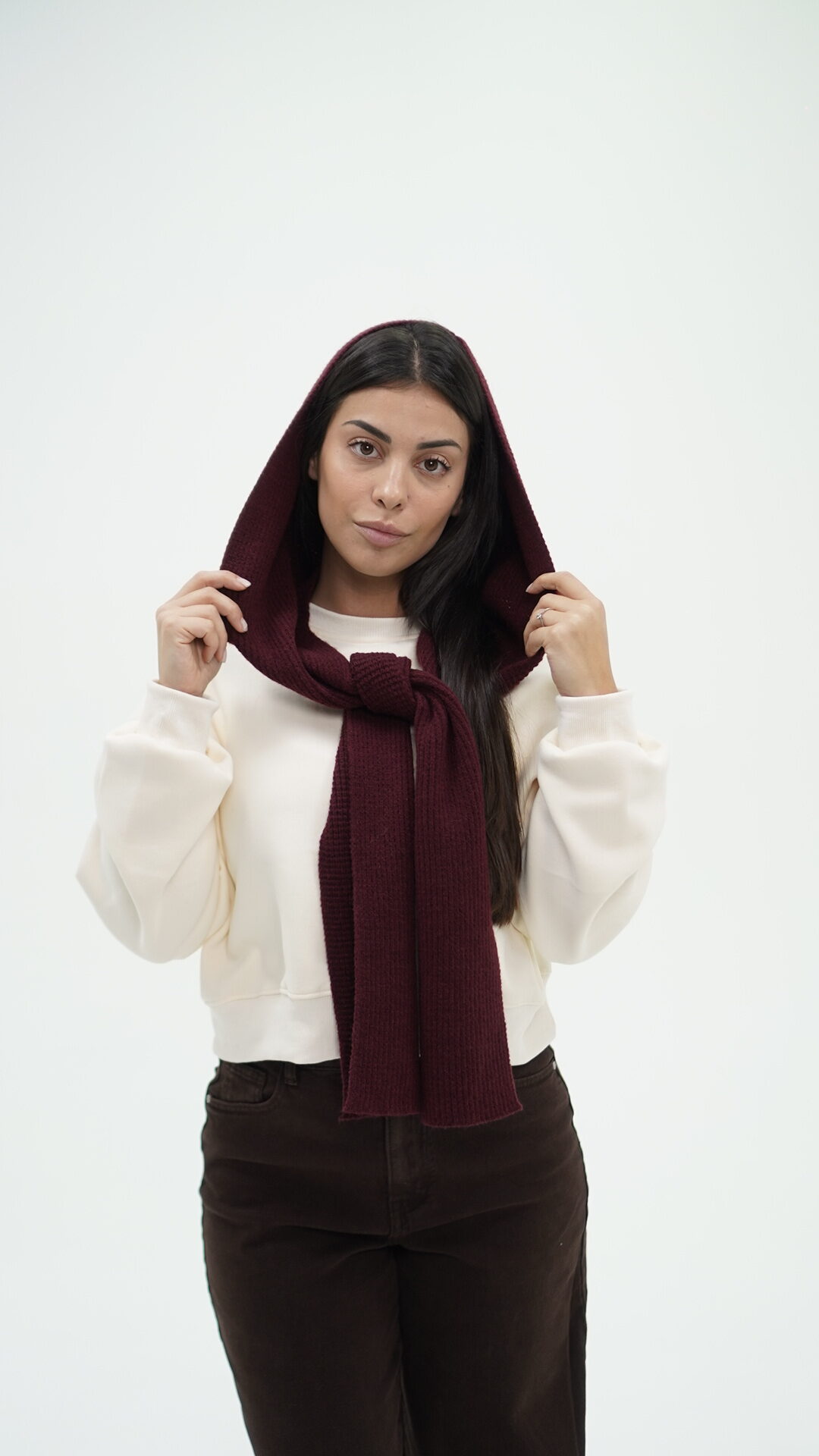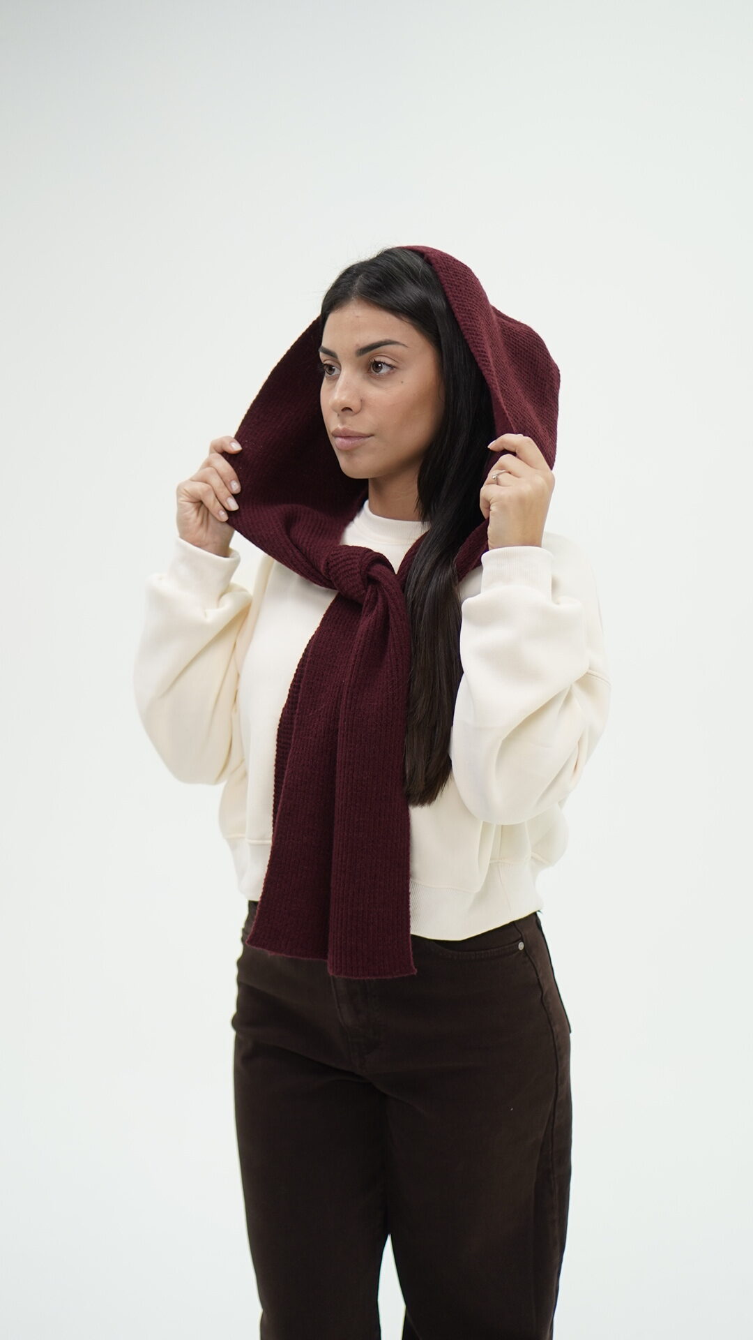 Felpa 2in1 con cappuccio color bordeaux che si può levare