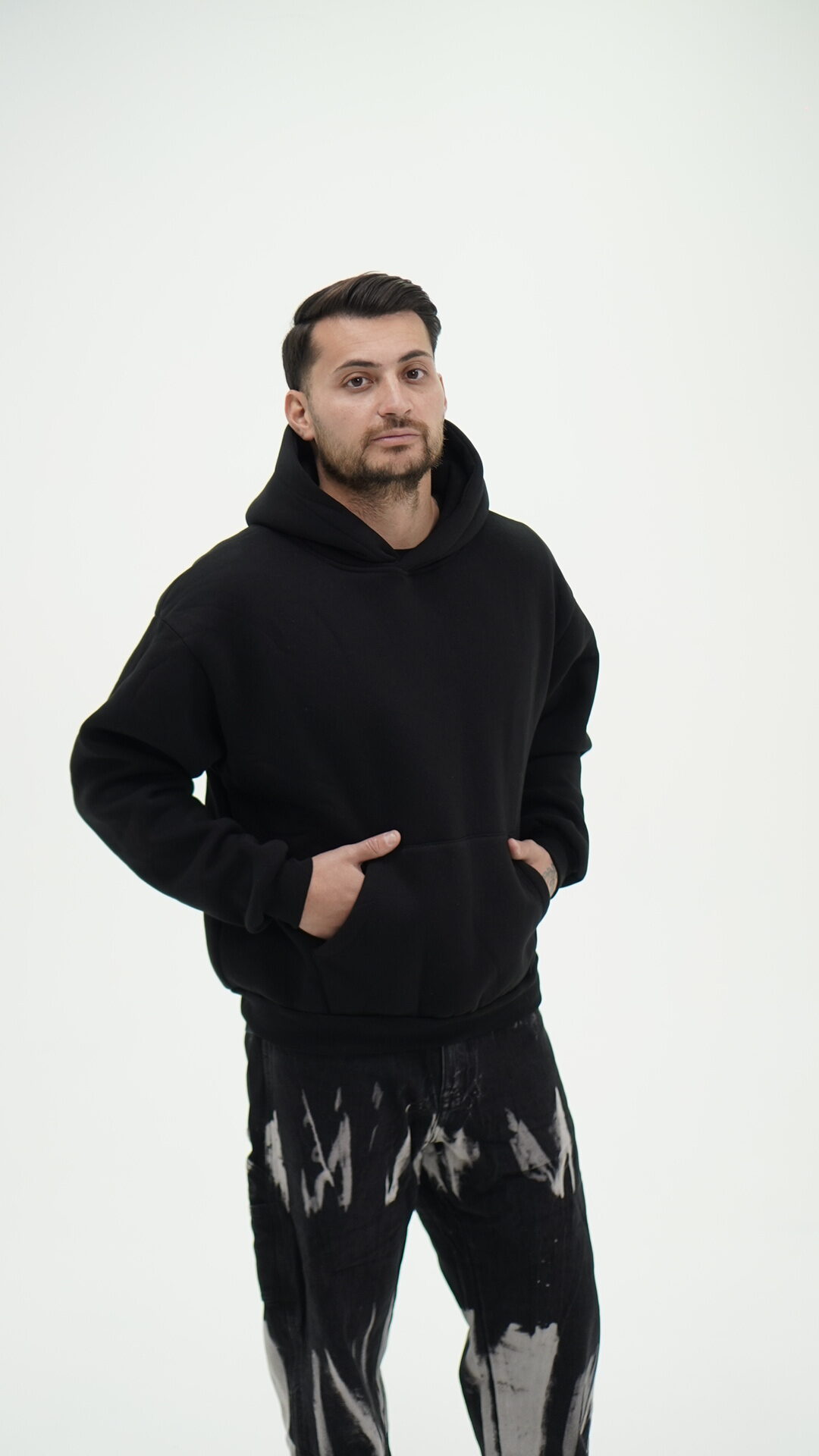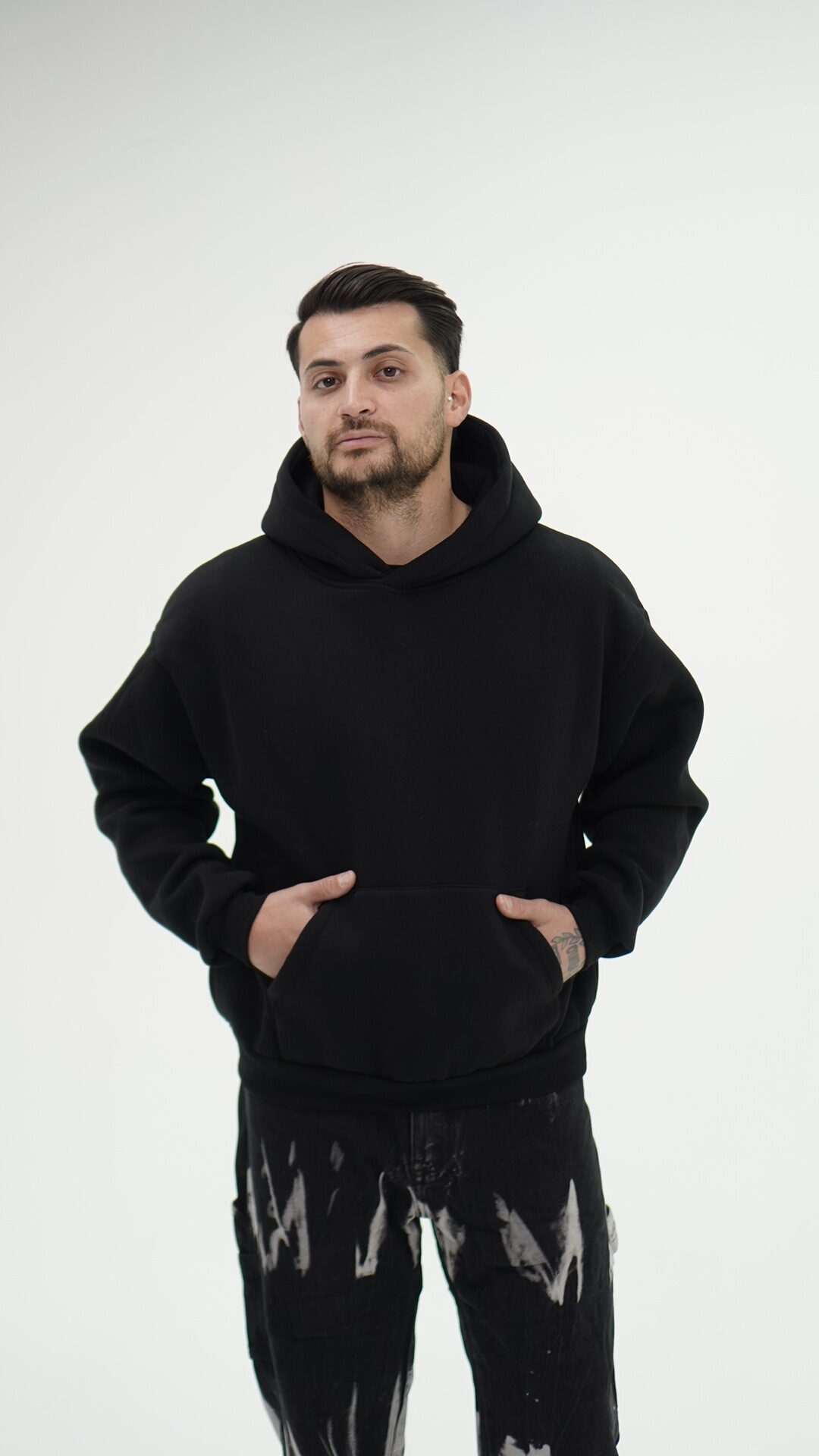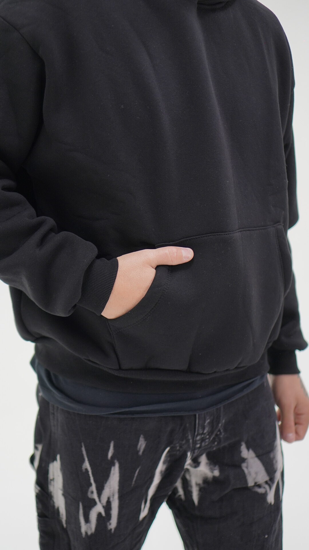 Felpa all’interno felpata con cappuccio e tasche frontali.