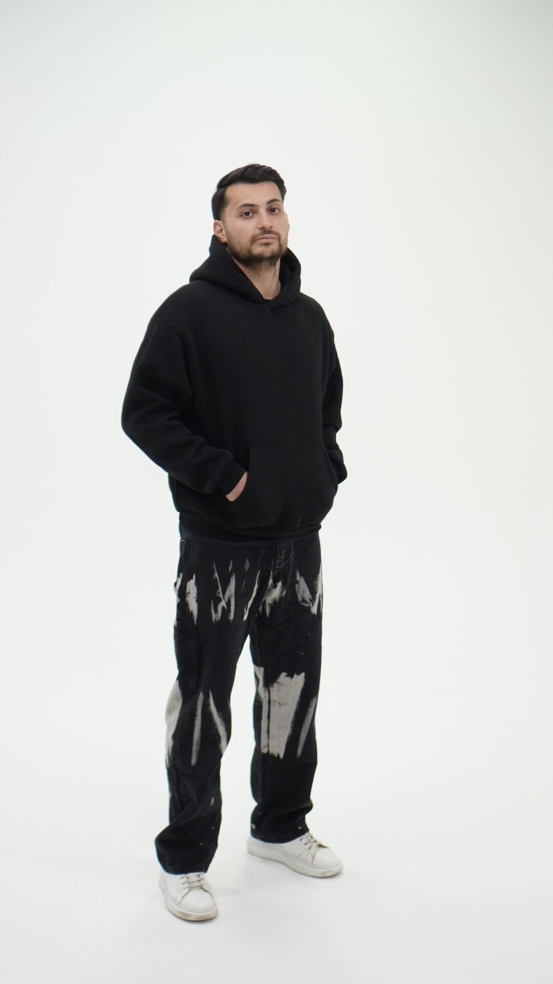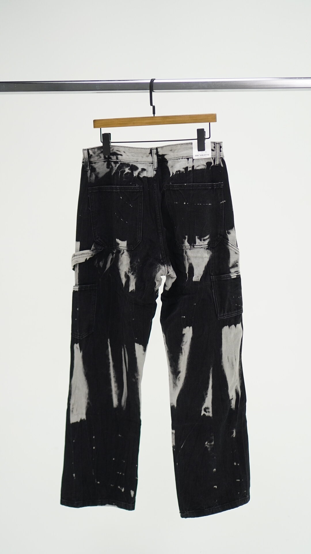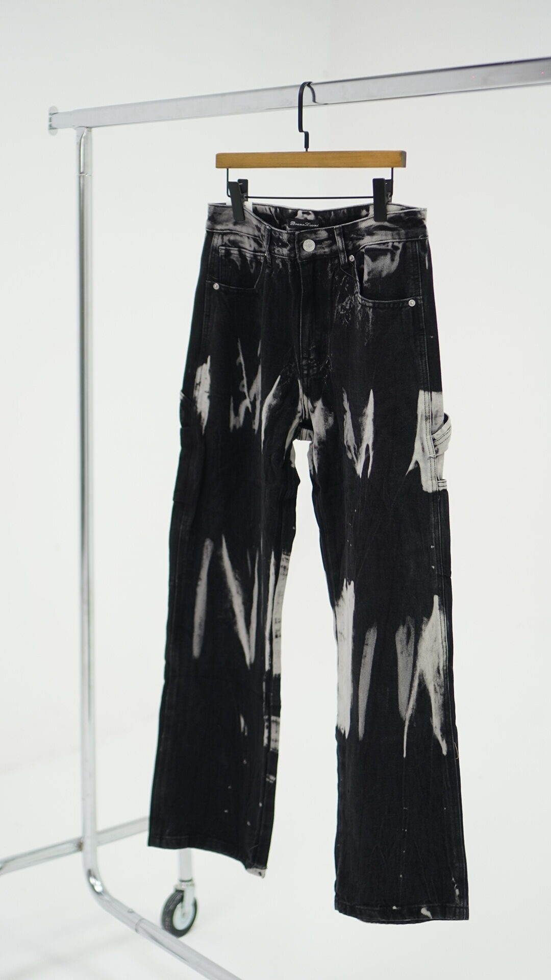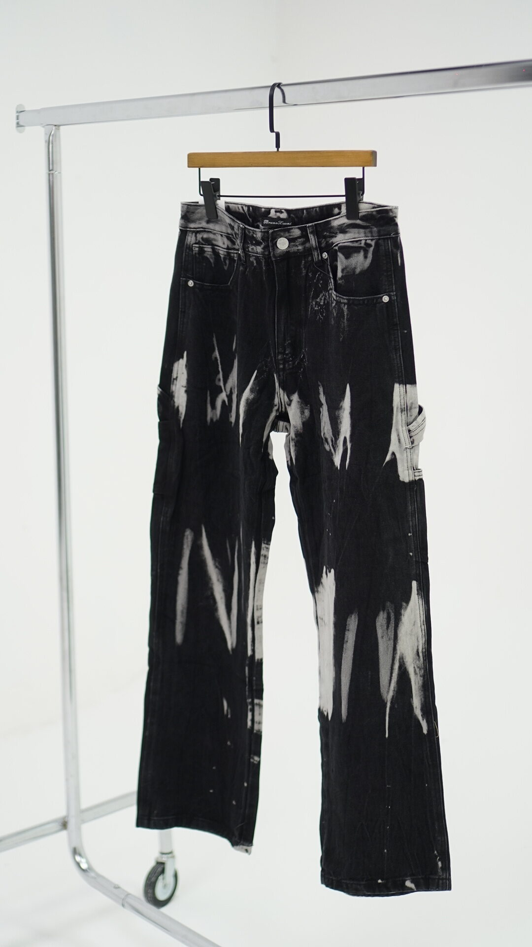 Jeans ampio nero con chiazze grigie.