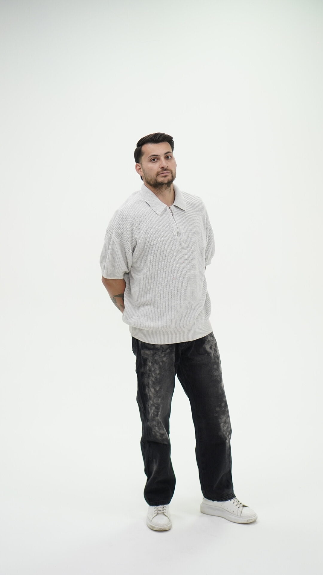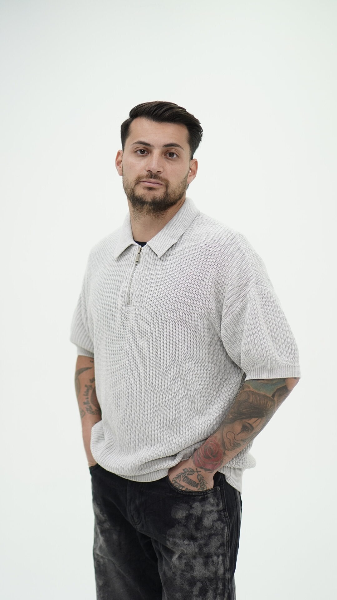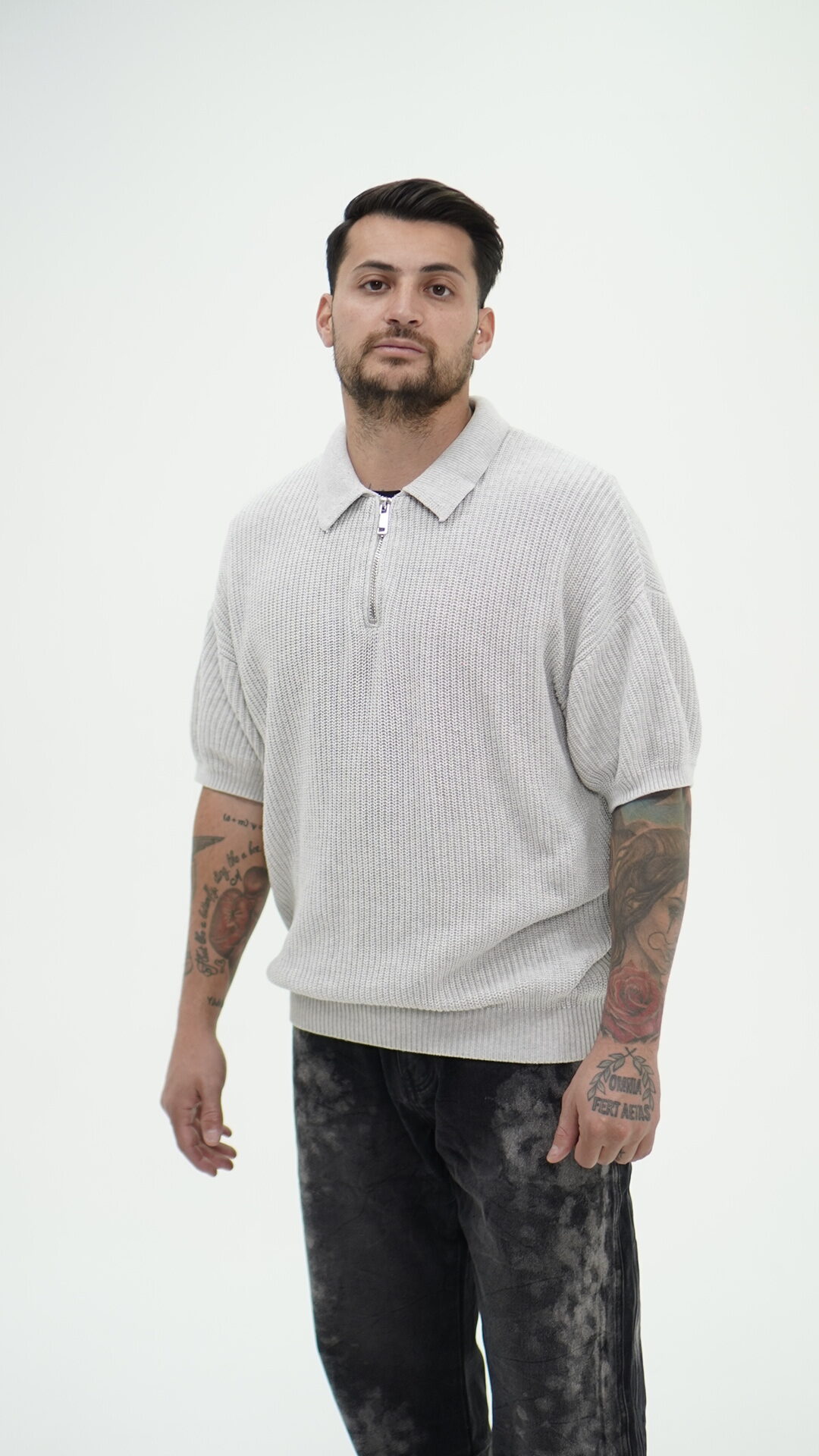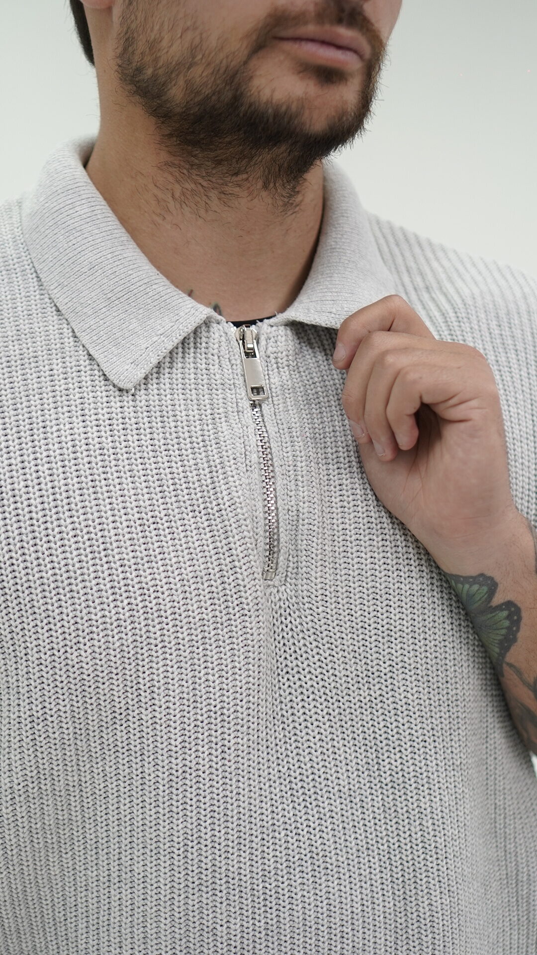 Maglioncino con Zyp alta a maniche corte, veste morbido.