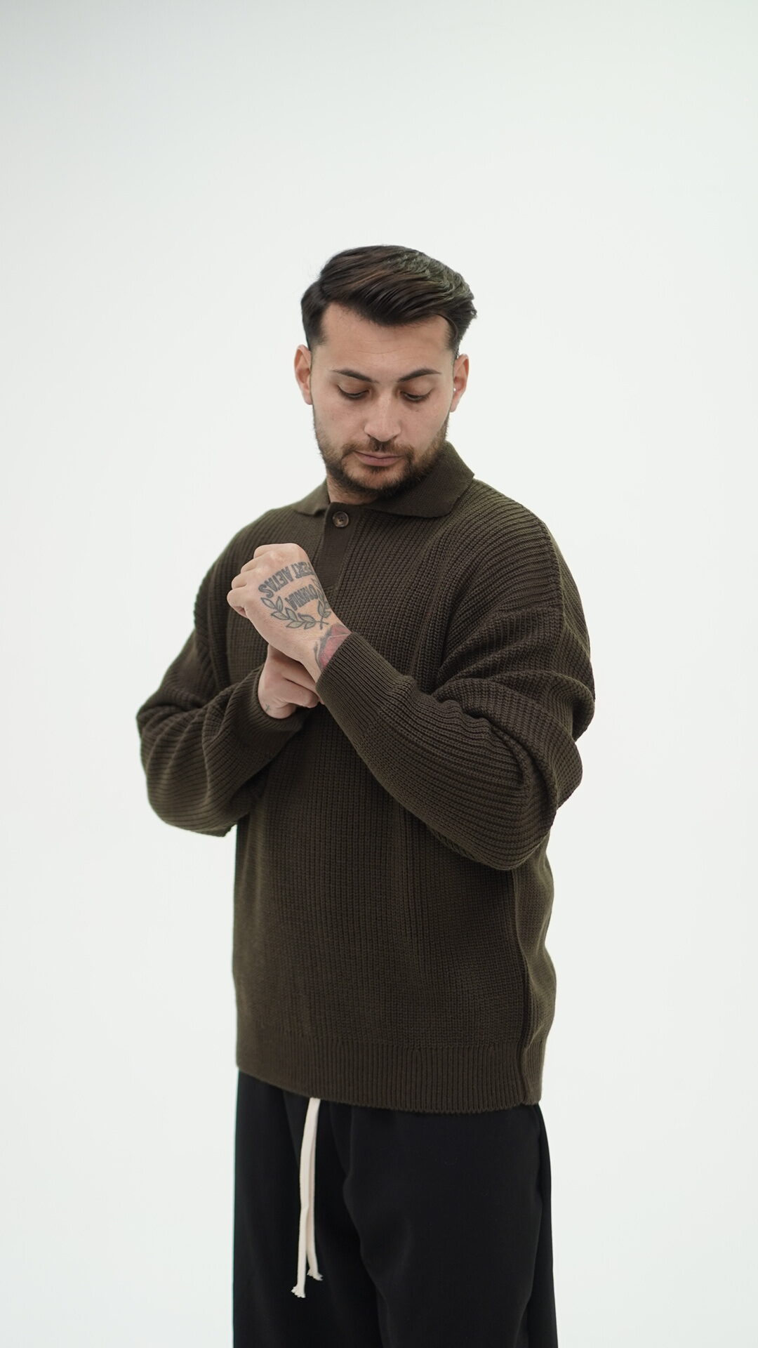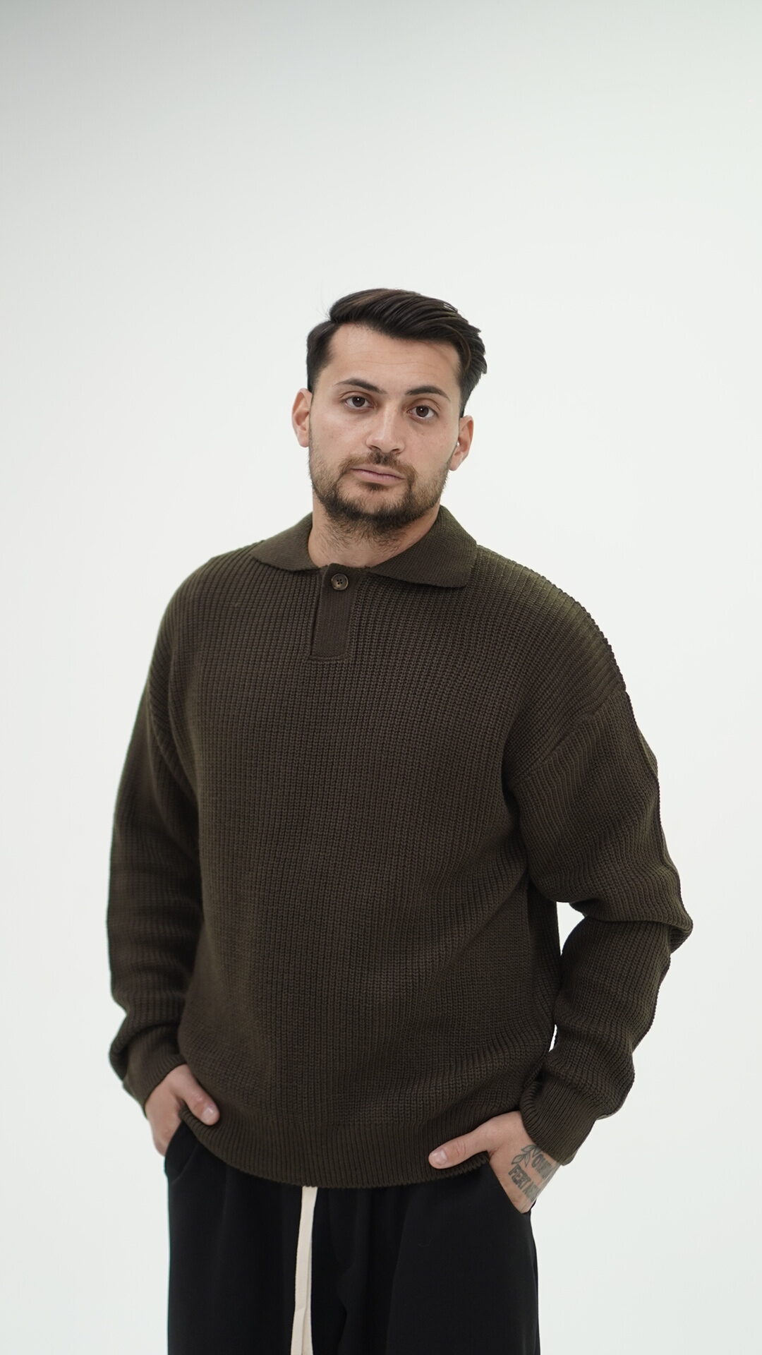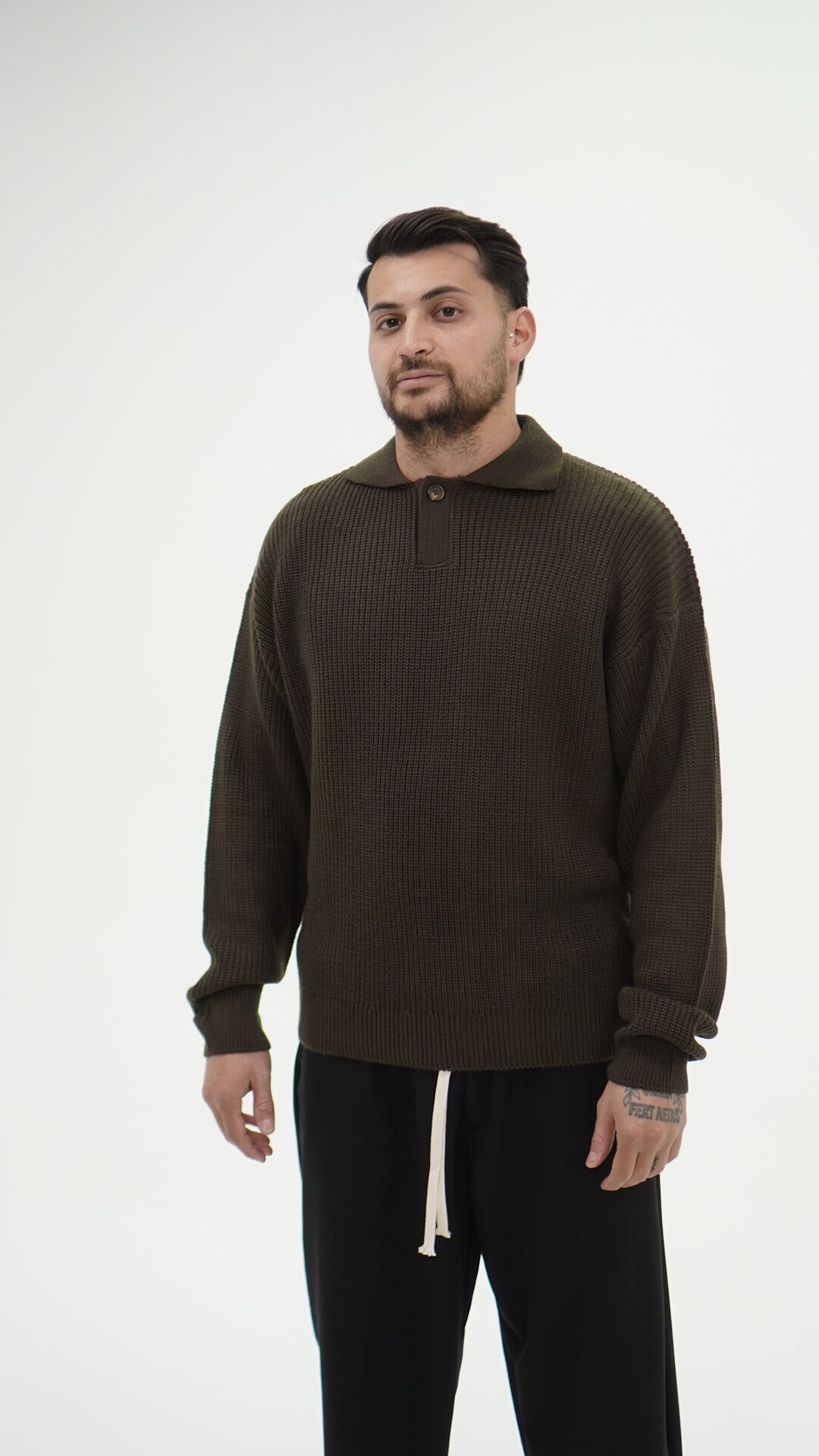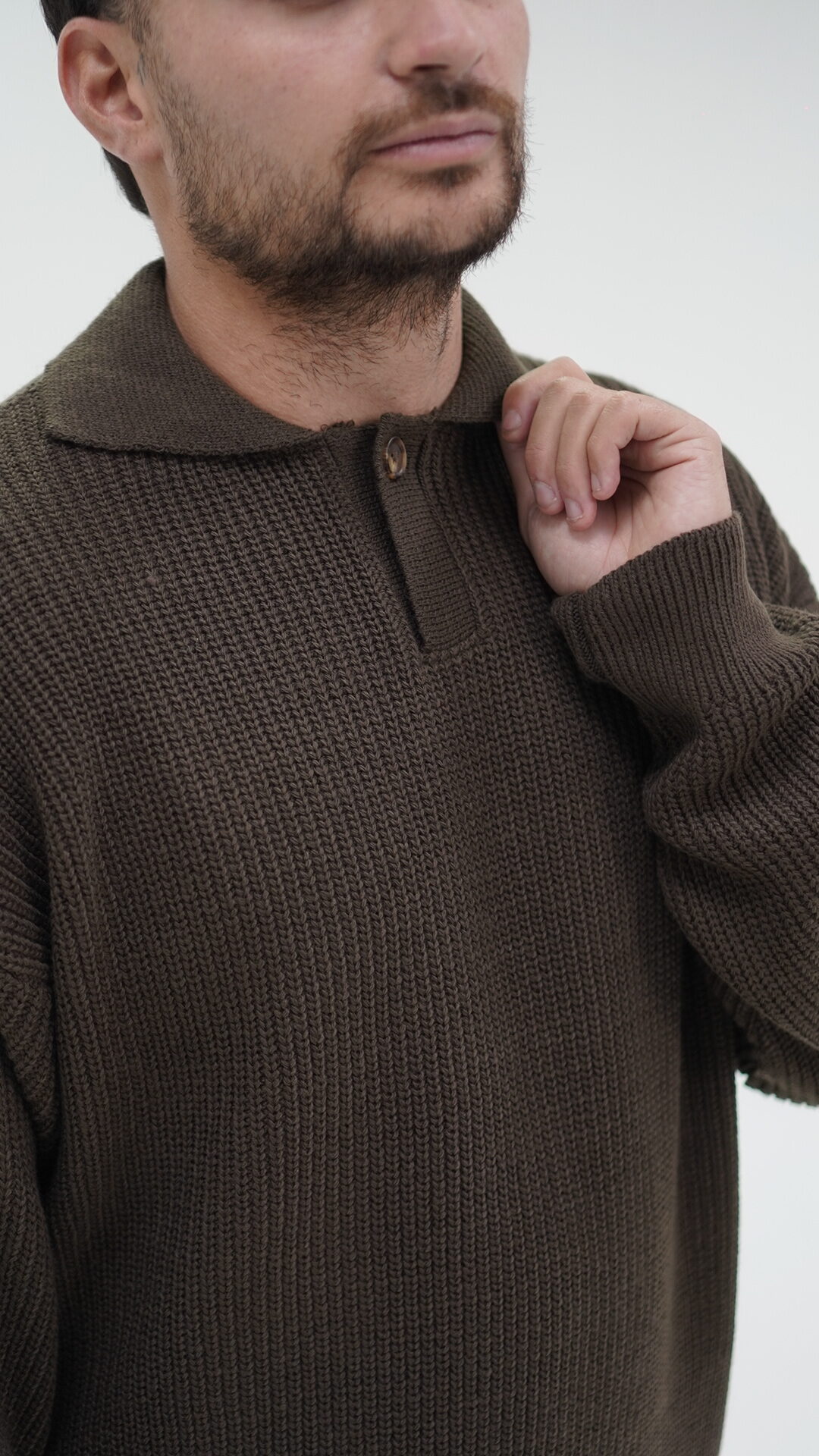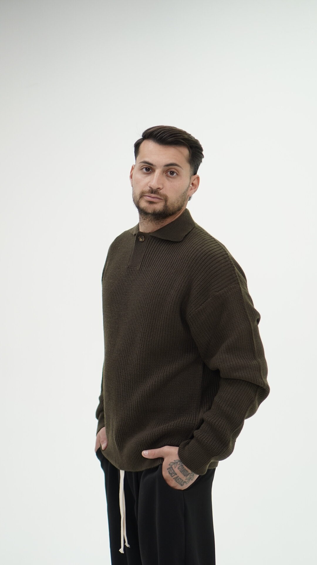 Maglione che veste morbido con bottone chiusura collo stile polo.
