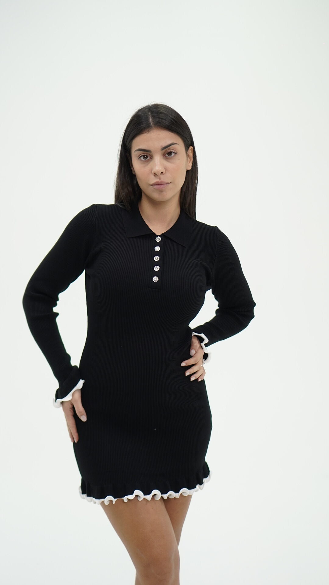 Vestito a costine nero DIAMOND